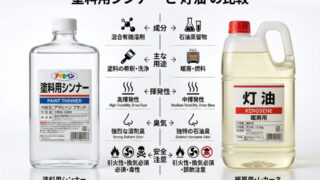 塗料用シンナーの代用に灯油は使える?成分・引火点・仕上がりへの影響を徹底解説。安全な使い方・代替品5選も紹介。DIYで失敗しないための完全ガイドです。